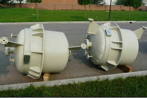 二種:Oblation纏繞工藝方法,利用玻璃鋼材料,具有一定的柔順性質(zhì),在生產(chǎn)車間里先纏繞成PPH聚丙烯異型設(shè)備殼體以后,在橫向上施加以一定的壓力裝上卡車運(yùn)輸?shù)绞褂霉さ?,然后再恢?fù)到原來的圓柱外形,然后再裝配成所設(shè)計(jì)的特大型玻璃鋼P(yáng)PH聚丙烯異型設(shè)備。